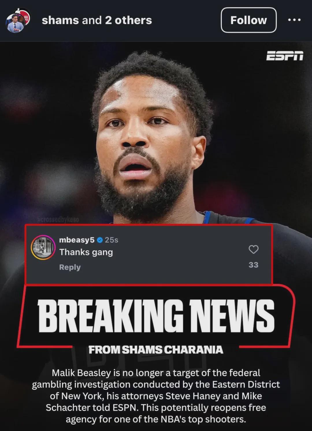 当时NBA调查后,认定罗齐尔没有违反联盟规定。今年休赛期,纽约东区联邦检察官办公室重启调查,罗齐尔目前未被指控,但调查仍在进行中。另一NBA球员马利克-比斯利今夏也遭到调查,不过比斯利已经洗脱嫌疑,重新进入自由市场。